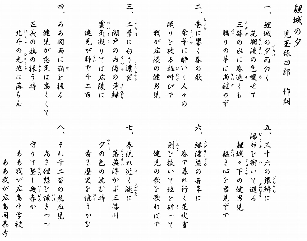 | 明34(1901) | 6 | 広島県立広島中学校と改称。 |